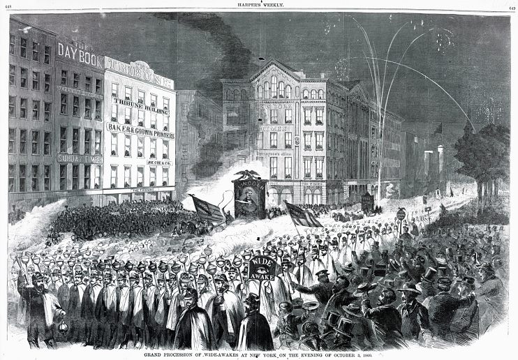 [6] Thanks for much of what follows to Charles D. Goff and his paper, “Torchlight Soldiers: A Wisconsin View of the Torchlight Parades of the Republican Party ‘Tanners’ and the Democratic Party ‘White Boys in Blue.’” In Wisconsin Academy of Sciences, Arts and Letters, 1978, Vol 66, pp. 206-234.