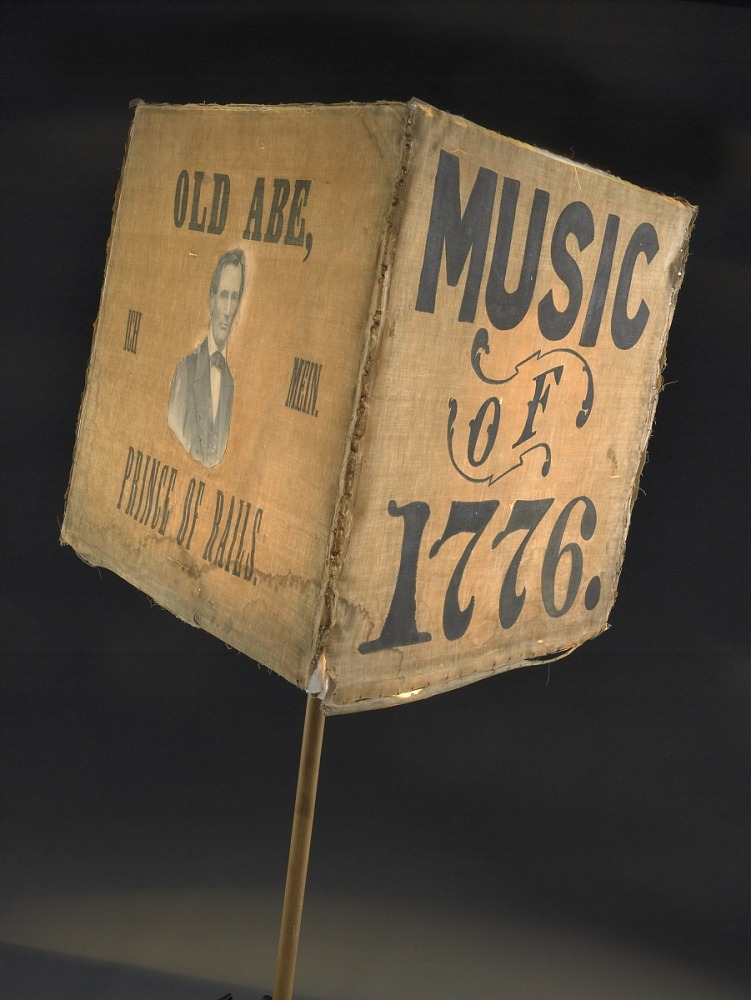 Major parades included many wagons, decked out like today’s “floats,” cavalcades of horsemen (including “lady equestriennes”), and long lines of private carriages and farm wagons carrying partisan supporters and festooned with flags and mottos. Goff reports that “Calvary troops were used as honor guard escorts for visiting celebrities. Cavalrymen tended to be an elite Tanner unit, since they almost invariably were mounted on fine horses and showed a drill proficiency which clearly marked them as veteran Union Army cavalrymen.” Men and wagons carried three or more-sided wooden boxes covered with cheesecloth or paper, called transparencies, containing torches and painted with political slogans or pictures of the candidates, some by nationally famous caricaturists, like Thomas Nast.[11]