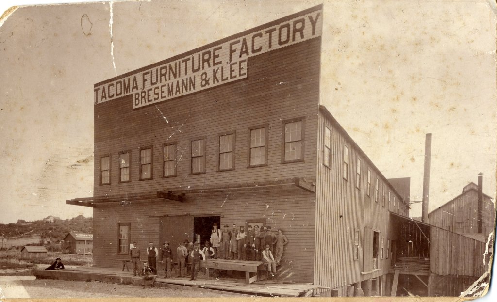 After Gus Bresemann sold his operation at Spanaway Lake, he bought out Bauerle’s interest in the Tacoma Furniture Factory and began a partnership there with Klee in 1889, bringing up three sons in the furniture trade.